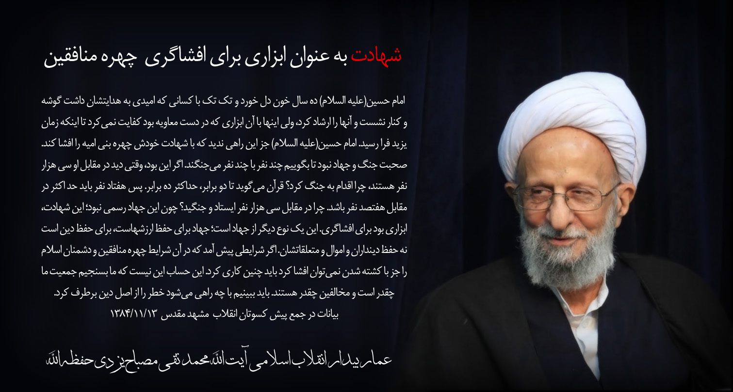 پوستر آیت الله مصباح یزدی حفظه الله درباره ی شهادت و جهاد برای افشای چهره منافقین