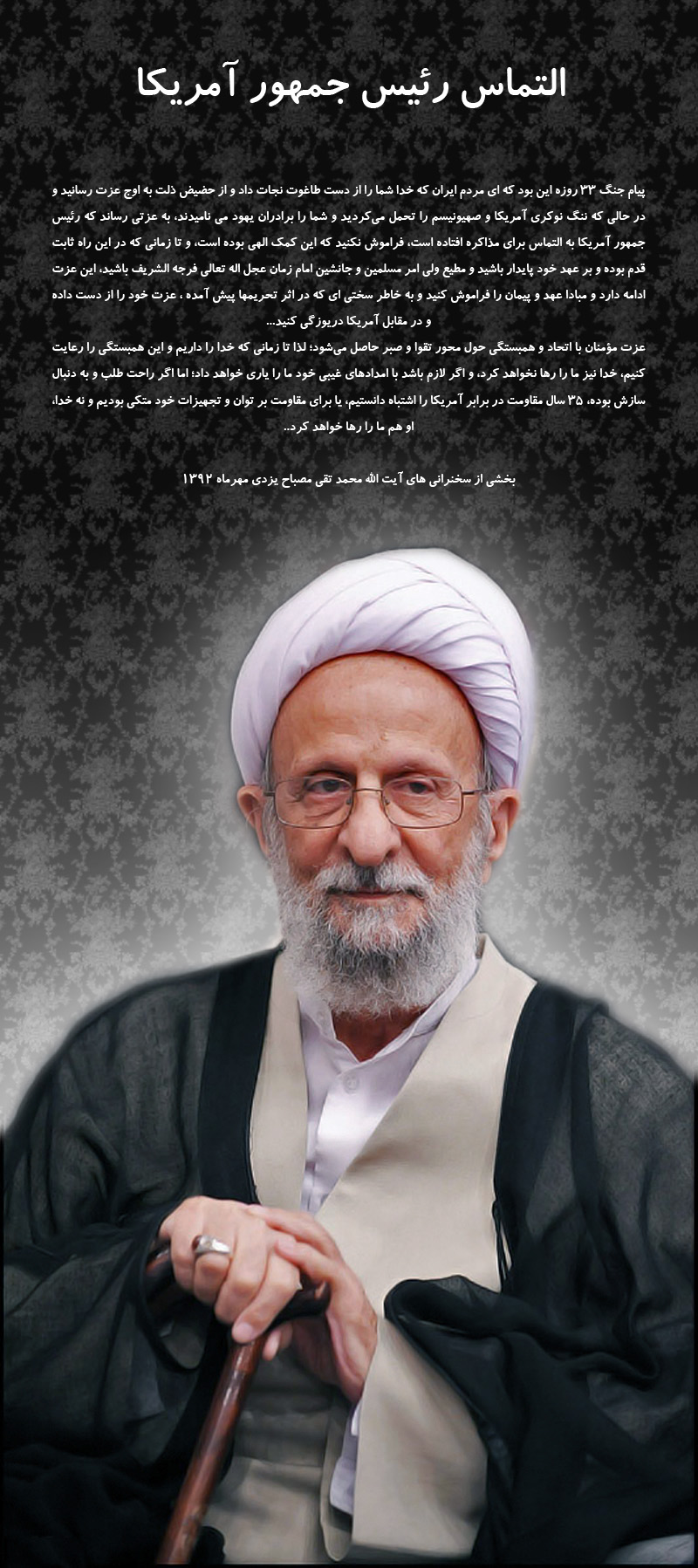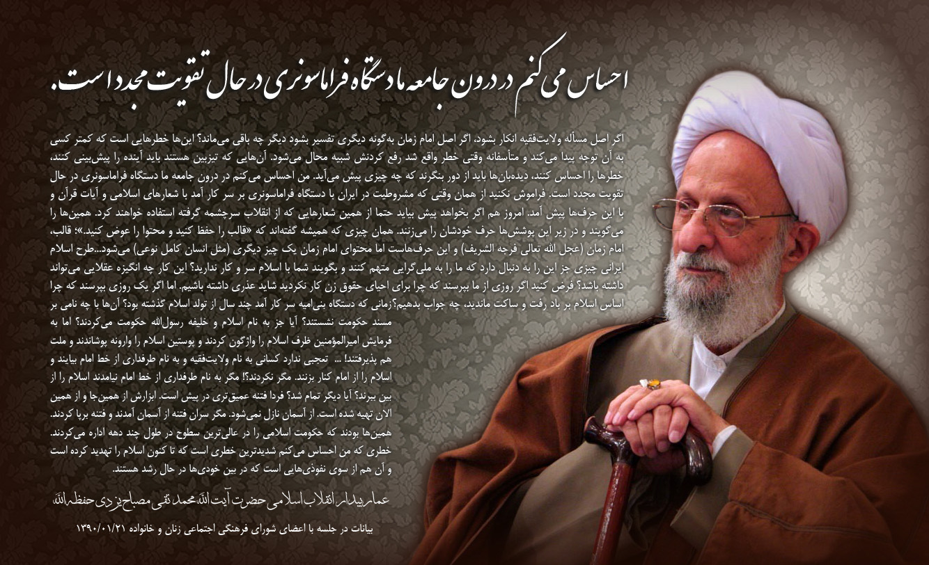 پوستر بیان آیت الله مصباح یزدی در مورد نقطه ضعف مشترک دولت های گذشته و نفوذ فراماسونری